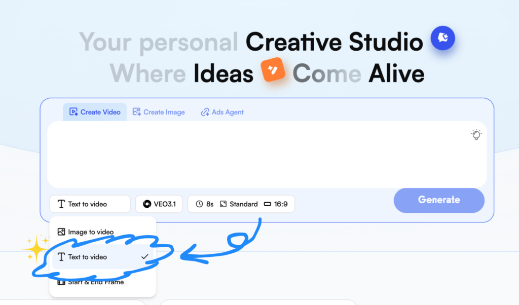 Turn your words into visuals instantly. Simply type a description of your idea, and our Vibe Video generator will create a high-quality clip that matches your prompt perfectly. It’s the fastest way to visualize a story.