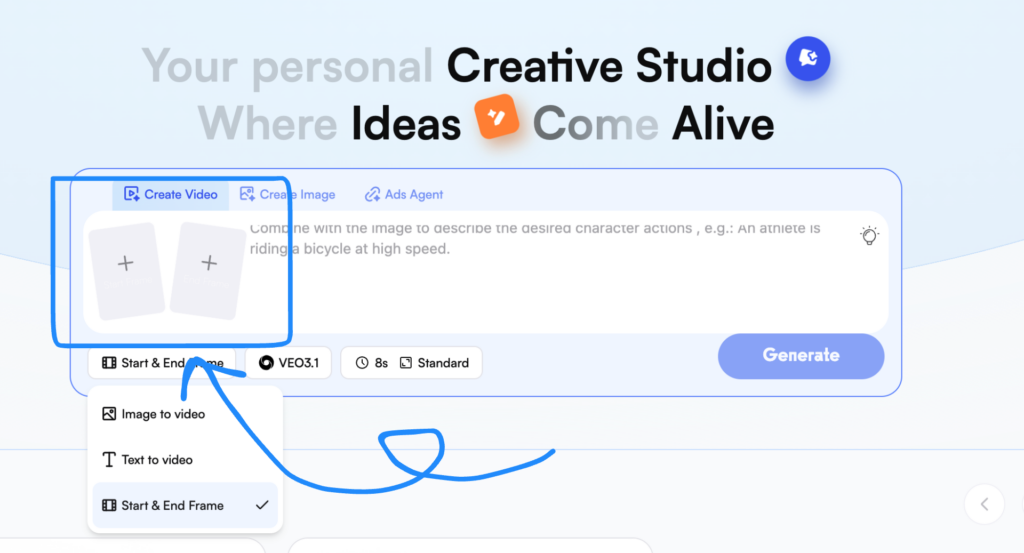 Begin by typing your own creative idea directly into the box. If you need inspiration, browse through our huge library of creative templates. This is the best way to start your Vibe Video journey and find a style that fits your vision.