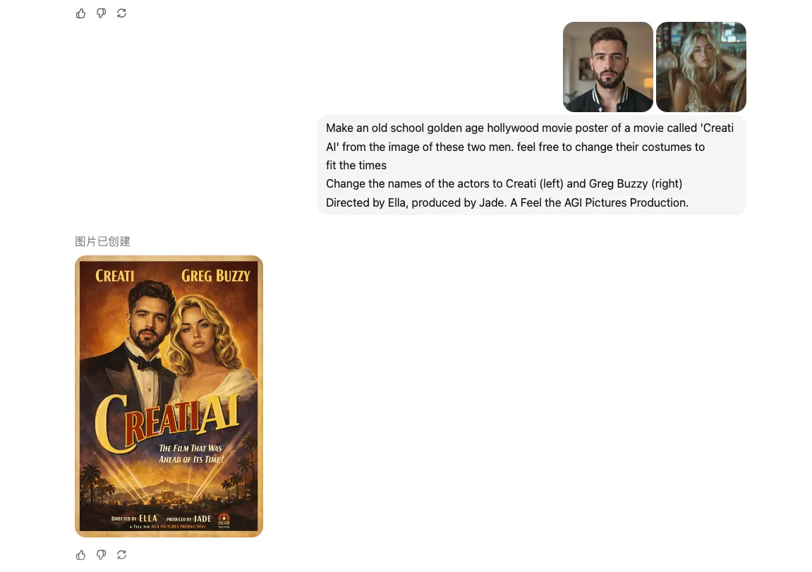 Ever wanted to star in a movie? Take a random snap from your camera roll and let GPT Image 1.5 give it the full Hollywood treatment. It automatically swaps your hoodie for a vintage tuxedo (or space suit) while making sure you still look like you—just way more dramatic. Plus, it finally learned to spell! Unlike older AI that wrote in alien scribbles, GPT 1.5 nails AI typography. You get perfectly legible titles that actually match the vibe, whether it's "Golden Age" glam or modern grit. No design degree needed, just pure movie magic.
